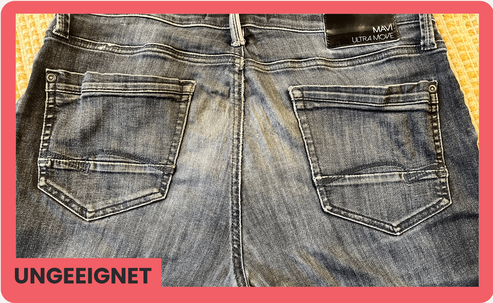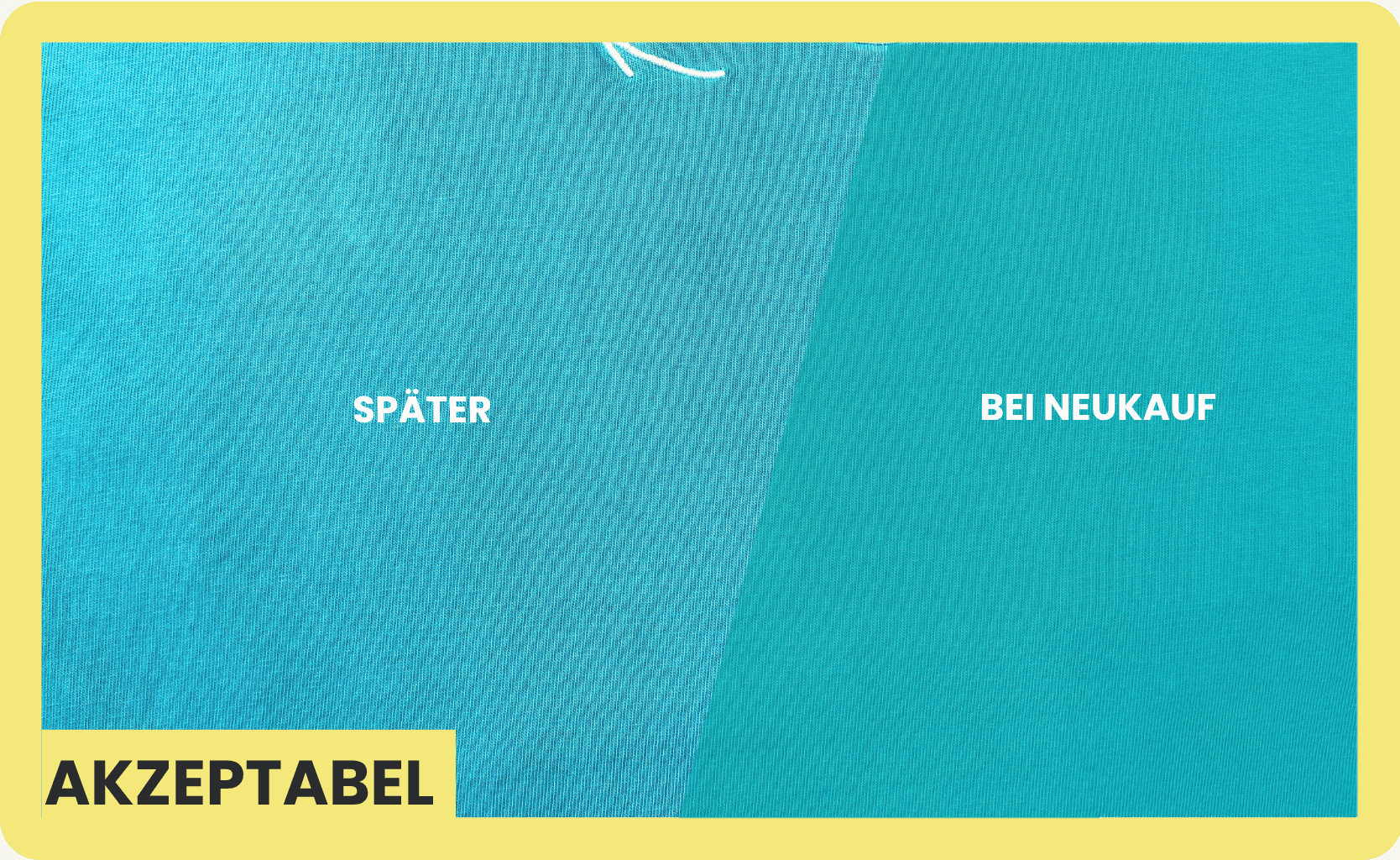 Kleidungsstücke die allgemein betrachtet über die Zeit etwas heller geworden sind. Das Kleidungsstück darf dadurch nicht fleckig wirken.