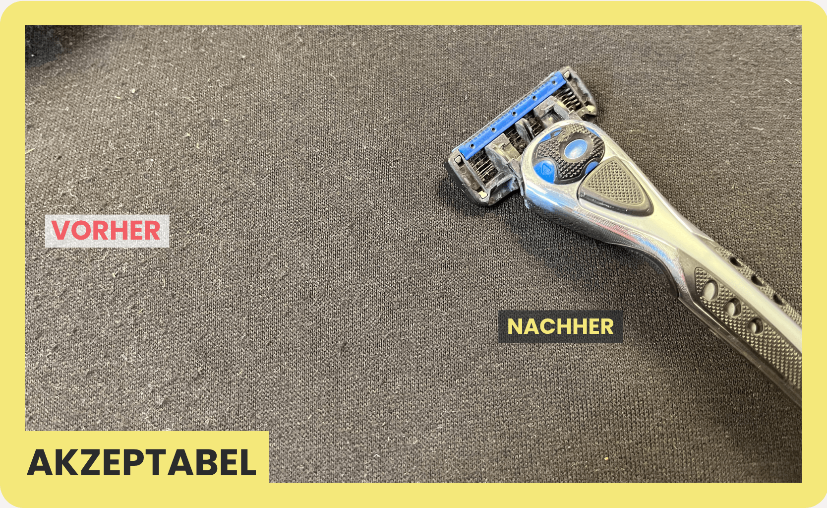 Entferntes Pilling (Stoffknötchen), ohne dass das Material dadurch zu stark ausgedünnt ist.