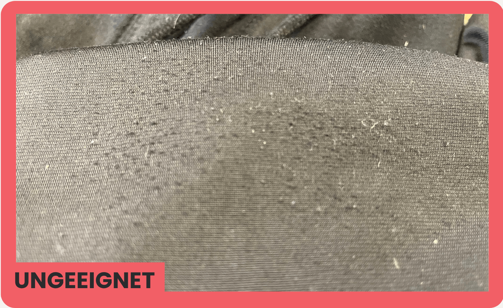 Bestehendes Pilling in Form von kleinen Stoffknötchen. Das gilt insbesondere für Strickware, diese ist besonders anfällig.