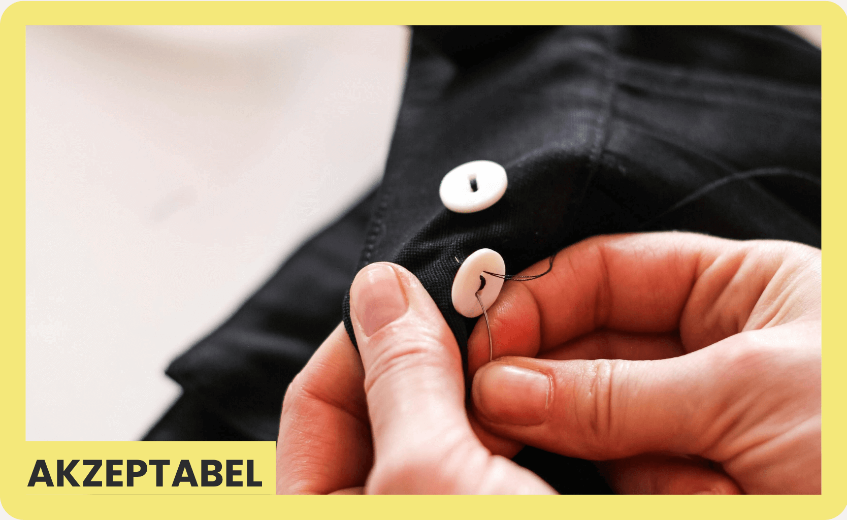 Knöpfe, Zipper etc. die ersetzt wurden, dem Original ähneln und die Funktion des Teils wieder herstellen