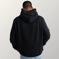 Dieser schwarze Hoodie für Männer aus Bio-Baumwolle ist das next Level klimaverträglicher Mode. DON´T WEAR A HOODIE - WEAR A LABEL