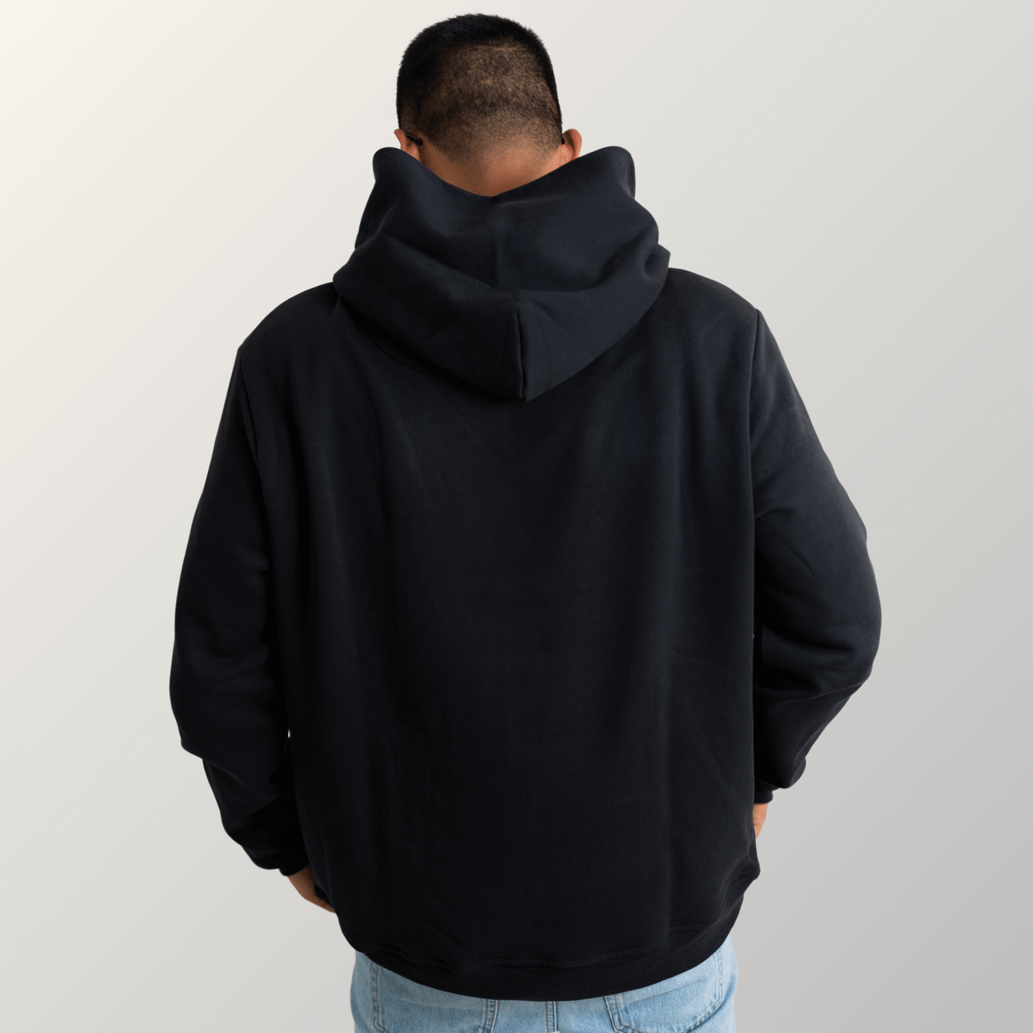 Mit 380 g/sm ist unser Hoodie ein echtes Schwergewicht unter den Kapuzenpullis 💪. Durch die angeraute Innenseite fühlt es sich an, als trägst du eine Wolldecke. So hält er dich auch an den kältesten Tagen im Jahr schön warm und wird dich lange begleiten können.